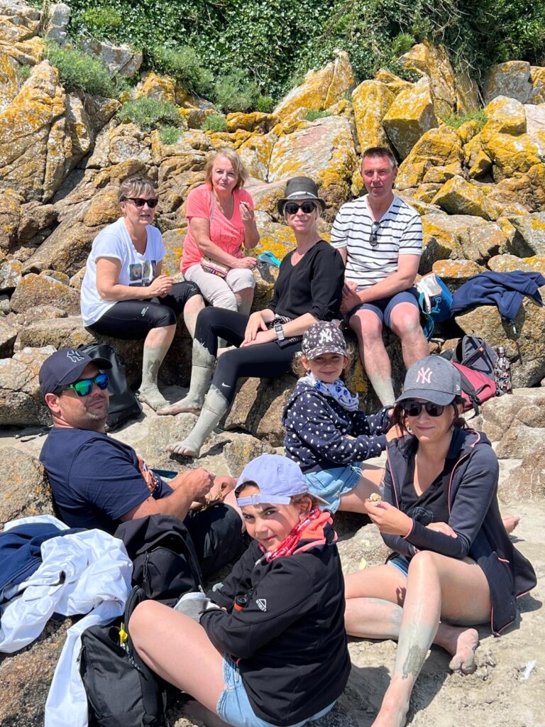 Arrivée à l’îlot de Tombelaine, en suivant la mer descendante, nous avons partagé un pique-nique bio et local fourni par notre guide : pâté et jambon de cochon de Bayeux, plante et légume du jardin, pain et fromage de chèvre de la ferme voisine.
